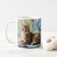 Aproveite suas bebidas quentes favoritas com um toque de graça felina. Esta atraente caneca cerâmica apresenta um gato Bengala cativante, fotografado em estilo aquarela, mostrando seu casaco distintamente visto e seus olhos azuis meserizantes. A figura, exibida em ambos os lados da caneca, mostra o elegante gato relaxando por uma janela, em frente a um vaso de flores azuis. Um presente encantador para amantes da raça gata Bengala, a caneca é um na moda para qualquer cozinha ou escritório doméstico.