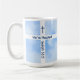 Esta caneca apresenta uma cruz com uma mensagem e um verso Bíblia junto com uma foto do fundo do céu. O verso de mensagens e Bíblias é personalizável.
