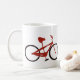 Um design legal para aqueles que gostam de pedalar. Uma bicicleta com um assento vermelho e uma armação, pedais pretos e pneus pretos. Adicione um nome ou diga se desejar.