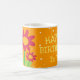 Surpreenda seus amigos ou familiares no aniversário deles com uma caneca de café. Uma caneca de flores bonitas é excelente para o presente de aniversários. Amplie seus desejos e amor de aniversários, compartilhe sua felicidade juntos nessas ocasiões especiais com um cartão de cartões de aniversários também. O design:- fundo cor de laranja na caneca de base branca, projetado com 3 flores bonitinhas, grupo de estrelas brancas como decorações e com redações de Feliz Aniversário para Você. Todos os design são ajustáveis, redimensionáveis ou movem sua posição para seu gosto.