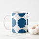 Bonita e tenda Grande Bolinhas Mug. Este design apresenta bolinhas circulares grandes de tamanho excessivo em azul e branco. O texto pode ser adicionado a esta design para lhe dar um toque pessoal.