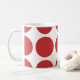 Bonita e tenda Grande Bolinhas Mug. Este design apresenta bolinhas circulares grandes de tamanho superior em vermelho e branco. O texto pode ser adicionado a esta design para lhe dar um toque pessoal.