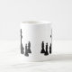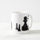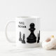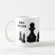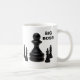Grande peão de xadrez preto cercado por quatro pequenos reis de xadrez isolados sobre o fundo branco. Tomando a grandeza para a grandeza. Uma caneca de café engraçada. Personalizável. Você pode mudar a imagem e pode alterar ou excluir o texto modelo Big Boss.