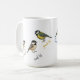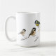 A delicate watercolour illustration featuring beautiful European garden birds, including the Blue Tit, Great Tit, Coal Tit, Willow Tit, and Crested Tit. Soft natural tones and a calm style make this a perfect coffee cup for nature lovers and bird watchers.