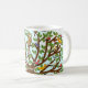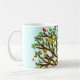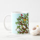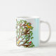 Caneca de observação de aves com árvore cheia de cartoons. Para personalizar adicionar nome do pássaro.