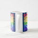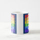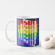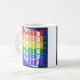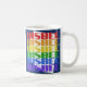 O design de caneca de café que diz "Bisbee" é azul escuro colorido, mas tem tinta branca, vermelha, laranja, amarela, verde, azul e roxa. Ele o torna ideal para café ou chá de manhã. É seguro para micro-ondas e lava-louças.
