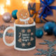 Caneca de Natal Whimsical com ilustração desenhada à mão de biscoitos de férias. O texto diz "Espíritos de assar brilhantes".