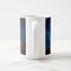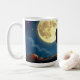 Um gato preto se senta entre abóboras sob a luz de uma lua de cheio nesta linda caneca de Halloween.