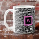 Caneca De Café Black Gray White Cubism Neo Geo with Pink Monogram