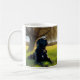 Esta caneca apresenta duas imagens diferentes de laboratórios negros. Funciona para os manipuladores direito e esquerdo.