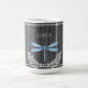 Aproveite seu café matinal com uma caneca de café personalizada rustica azul. Design de Mug apresenta uma libélula vibrante adornada com folhagem delicada contra um fundo de madeira rústica de cinza escura. Itens de presentes adicionais disponíveis com este design, bem como uma variedade de cores.
