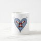 enjoy your favorite winter beverage in this primitive blue heart mug showcasing a cozy candy cane illustration. the rustic folk art aesthetic makes this a perfect companion for hot cocoa or coffee during the christmas season. this durable ceramic mug is a wonderful gift for fans of country home decor and those who appreciate a shabby chic touch in their holiday kitchenware.