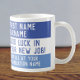 Um presente para alguém que se mudou para um novo emprego. Presente para um colega de trabalho que está indo trabalhar em outro lugar. Deixando a caneca de presente. Design de estilo de manchete preto. Personalize com o nome da pessoa que está mudando para um novo emprego. Adicione Sua Mensagem.