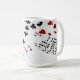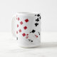 Jogando cartas e cinco códices com seis canos no topo. Há quatro ases e uma mão de brincadeira sobre cartas de classificação pequena. Boa sorte a todas as suas iniciativas! Caneca de café