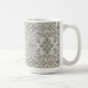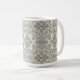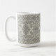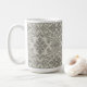 This coffee mug features a pattern of floral damask hand-drawn line art in black on beige for a boho look.