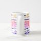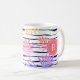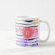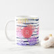 Folha de palma tropical ombre e forma de faixa colorida do arco-íris, caneca de café monograma com monograma redondo em cor rosa.