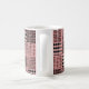 Esta caneca tem um design Boho de quadrados com padrões em preto e rosa.