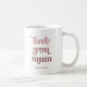Esta caneca boho e elegante diz "ama-te mãe" em tipografia boho e retrô da moda, em tons graduais de rosa e rosa mais escuro. O presente perfeito para o Dia das Mães ou em qualquer ocasião!