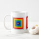 Bold concentric rainbow squares glow on a crisp white background, stacking red, orange, yellow, green, blue and purple in a clean geometric frame that feels retro, playful and modern at the same time, creating a bright optical focal point that instantly catches the eye and radiates uplifting, creative energy.