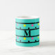 Formas geométricas coloridas, monogramas, com faixas pretas e bolinhas cor-de-rosa, amarelas e pretas. Personalize com seu texto Inicial ou outro, ou exclua a caixa de texto para deixar o vazio. O fundo é azul-turquesa bonito. Formas circulares brilhantes e divertidas de tendências recentes para os meses de primavera ou verão com amigos e familiares. Design de arte original © TamiraZDesign. www.zazzle.com/tamirazdesigns