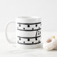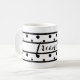 Bonito caneca com Amigos escritos no centro em um roteiro preto. Formas geométricas com bolinhas e listras pretas. Novo aspecto moderno. Visite minha loja para obter acessórios correspondentes. Designs originais de arte © TamiraZDesign.