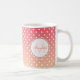 Esta caneca fofa apresenta um padrão de bolinhas branca em um fundo cor-de-rosa. Personalize-o com um nome e um monograma em tons de rosa.