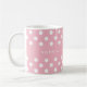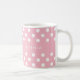Esta caneca na moda apresenta bolinhas brancas modernas em um plano de fundo rosa bonito, juntamente com seu nome.