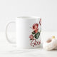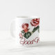 Acorde ao coffie bebendo fora de uma caneca que diga o bom dia.