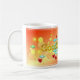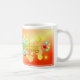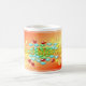 Caneca decorada alegremente em cores vivas e vivas com bolhas e corações e raios de luz para começar o dia no seu melhor humor