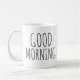 Uma simples casa de fazenda inspirou uma caneca de café com o ditado Bom dia em preto e branco.