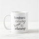 Bonita, elevadora e positiva caneca. Em diferentes tipos de tipografia de cinzas está a citação "bondade cuidando do amor e compartilhamento"