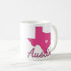 Uma caneca bonito para um Austinita com a forma do Texas com um coração em Austin. Personalize com seu nome em magenta. Um presente de excelente para uma universitária em Austin.