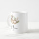 Uma caneca com um veado bonito deitado cercado por uma flora folhada. Design Rustic Boho.