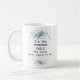 Uma bonito caneca personalizada decorativa feminina, com buquês florais azuis de cor d'água e uma citação engraçada sobre a criança mais jovem, © Julie McIver