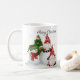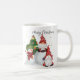 Gnomo Bonito Snowman Café Mug com nome pessoal ou nome familiar. O design bonitinho tem três gnomos, adoráveis bonitinhos de neve, árvores de Natal e escrita manual. Personalizar com um nome pessoal ou familiar. Excelente presente de Natal para a família e os amigos.