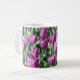 Aproveite a sua bebida favorita, quente ou fria, nesta caneca de café de grande estilo, que apresenta uma imagem de um jardim de Tulips bonito e roxos. Um design floral adorável para primavera ou a qualquer hora do ano!