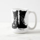 Botas de estilo militar em um quadro preto e branco. Canecas de café personalizadas. Ideia do presente.