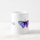 Desenho de arte da borboleta azul, cor de fundo personalizada e nome.