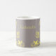 Mug Floral de Borboleta Doce e Atmosca Doce, com fundo de cinza empoeirado, borboletas amarelas claras e ornamentos florais. Esta elegante caneca floral é perfeita para o bebendo da sua bebida quente favorita com um toque de esférula. Fácil de personalizar, basta adicionar o texto personalizado de sua escolha nos campos de texto fornecidos. Clique no botão "Personalizar a TI" para encontrar opções adicionais de personalização.