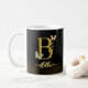 Esta caneca de café chic apresenta um monograma "B" dourado com borboletas moles e flores aquáticas. Uma escolha perfeita para sua bebida matinal, mesa de escritório, ou como presente de na moda para amantes de monograma e entusiastas de café.