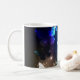Fabulosa, brilhante, azul e amarela, borboleta noturna sobre fundo escuro.