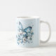 Caneca de café Borboletas Azuis e flores brancas
