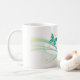 Uma caneca de café cerâmica mostrada com um impressão de borboletas giro. Personalize este item ou comprar como está.