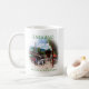 Sarajevo, capital da Bósnia e Herzegovina, é uma cidade encantadora com ecos do seu passado. Nesta imagem de lembrança, Pigeon Square, o centro do velho bazar, está cheio de pessoas comprando, crianças brincando e pombos procurando migalhas. Do outro lado está uma imagem de Mostar. Mostar é um belo destino, com arquitetura interessante e uma ponte de onde os habitantes locais mergulham. No verão, o ar está cheio de restaurantes grelhando almoço e jantando moradores e turistas. Esta caneca de café é totalmente personalizável.