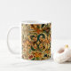 O produto apresenta um padrão de ornamentado uniforme com um estético rico e antigo. Ele apresenta um design de alto detalhe de elementos florais e botânicos girando em tons quentes e úmidos de ouro, laranja, vermelho e verde. A composição inclui flores, folhas e cercas intricadamente fundidas, criando um sentido de profundidade e movimento.