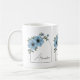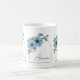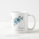 Botanical Arch Black Script Elegant Blue Floral Coffee Mug design features delicate botanical flowers arranged around a soft arch frame that highlights a personalized name in elegant script calligraphy typography. The combination of floral illustration and graceful lettering creates a refined, feminine aesthetic. With its balanced arch shape, botanical flowers, and elegant script typography, this floral design offers a timeless and stylish look created especially for her.