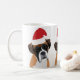 Adorável Boxer vestindo um chapéu de Papai Noel.
