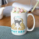 "Mostre sua força e seu amor pelo seu amigo furioso com esta ousada caneca de café de Pai de Gato. Apresentando braços grandes e musculares envoltos em um coração com um adorável dentro de gato, e ‘PAI CAT’ escrito em azul gritante por baixo, é a mistura perfeita de durão e macio para cada orgulhoso pai de gato."