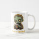 The zombie's enormous yellow bug-eyes, panicked expression, and trembling grip on the coffee cup perfectly embody that "don't even try to talk to me yet" pre-caffeine state we all experience. The character's pale green zombie skin, dark circles around the eyes, tattered brown clothing, and nervous energy create an endearingly relatable morning mood that transcends the living and the undead.