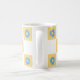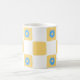 Caneca De Café Branco Amarelo Verificado Com Padrão De Flor Azul